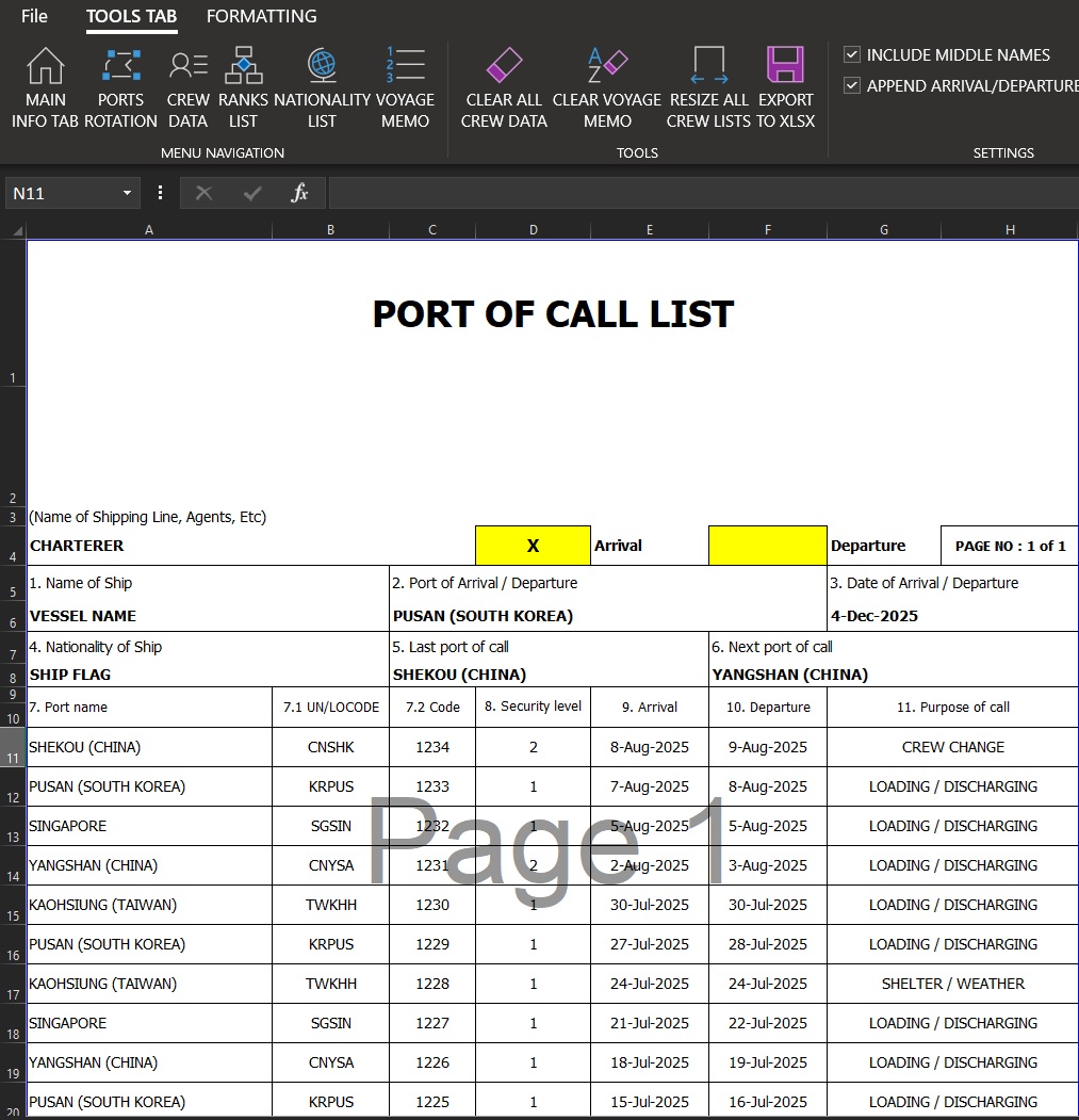 - 🧾 Auto-filled templates – generates standard port forms and IMO FAL forms from Excel-based templates