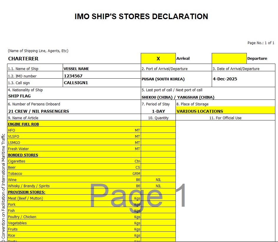 - Ship Stores Declaration