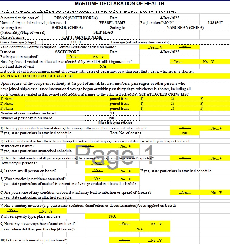 These forms are widely accepted by agents and port authorities in most countries and regions.
