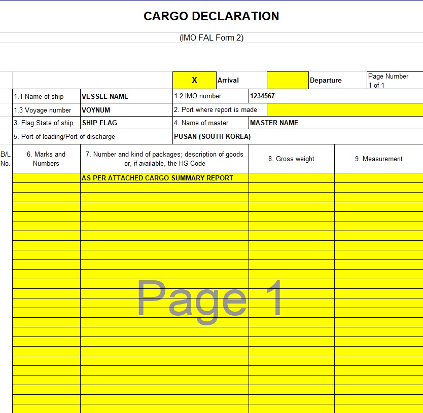 - IMO FAL Form 2 – Cargo Declaration